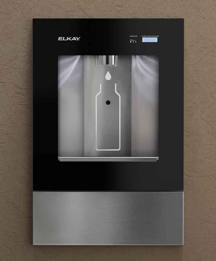 Contemporary design in-wall water dispenser with sensor activated hands-free bottle filling. Featuring interactive lighting and Green Ticker™ counting the number of plastic bottles saved with each refill. Ideal for contemporary office, homes, conference rooms, lobbies and commercial locations.